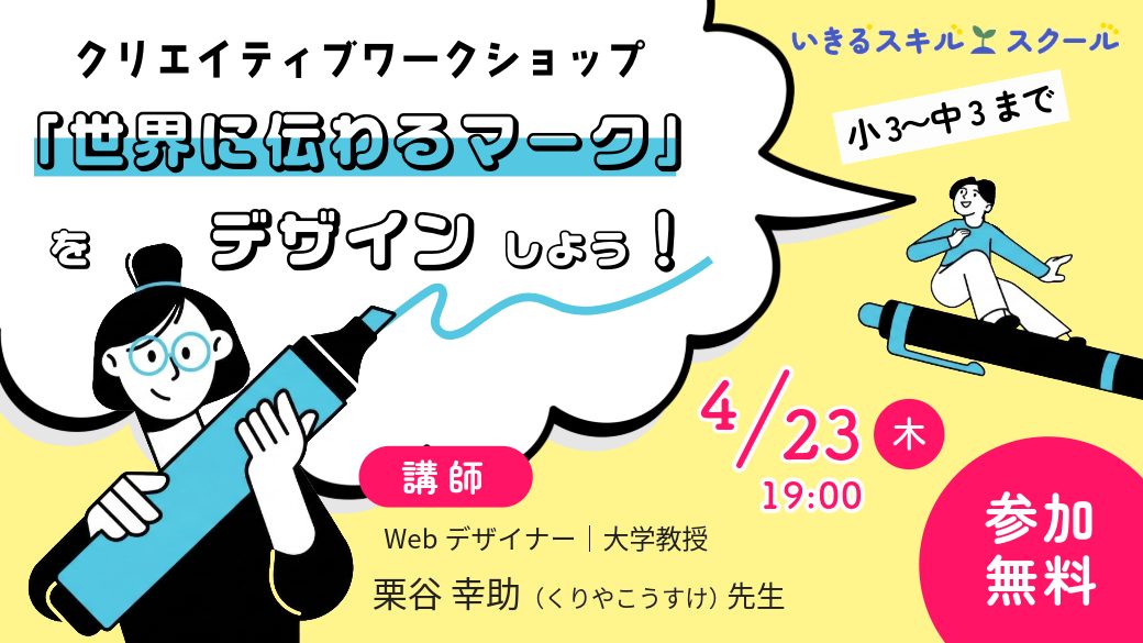 【募集中】言葉を使わないメッセージ!「世界に伝わるマーク」をデザインしよう<4/23 無料オンラインワークショップ>